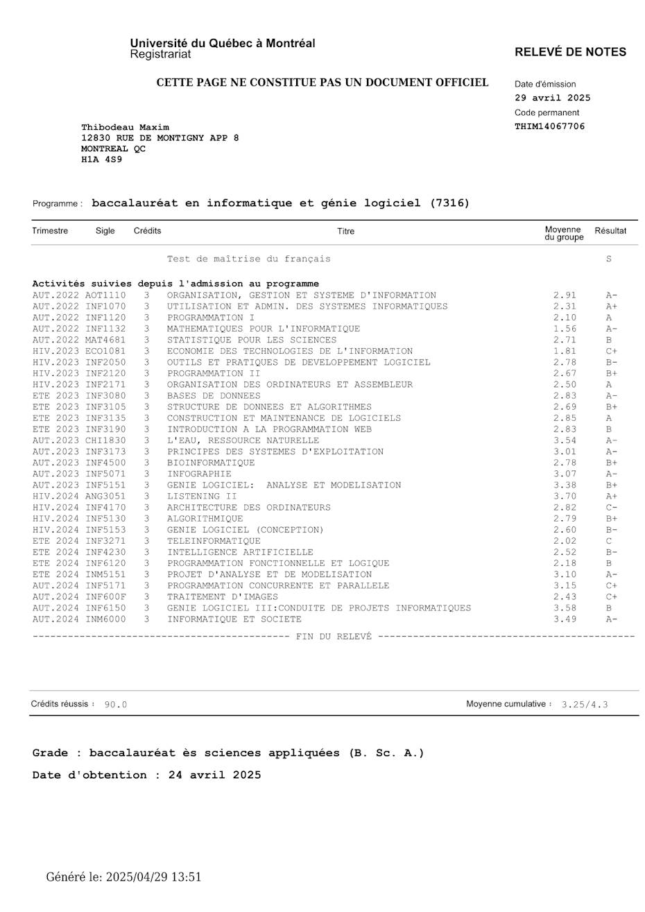 Relevé de notes