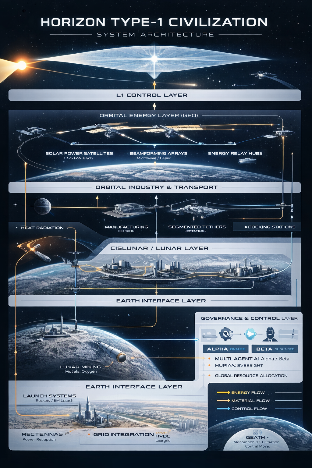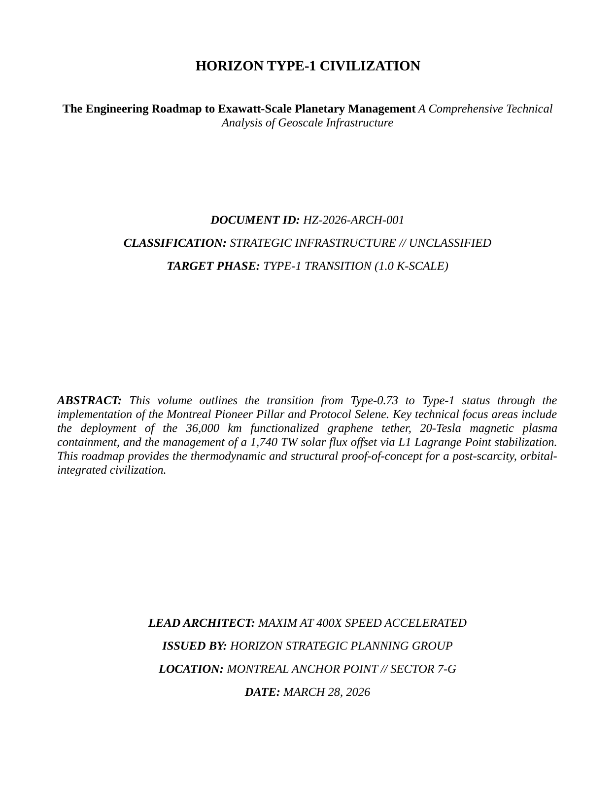 Recherche sur les infrastructures planétaires et la gestion automatisée des ressources pour une civilisation de Type-1.